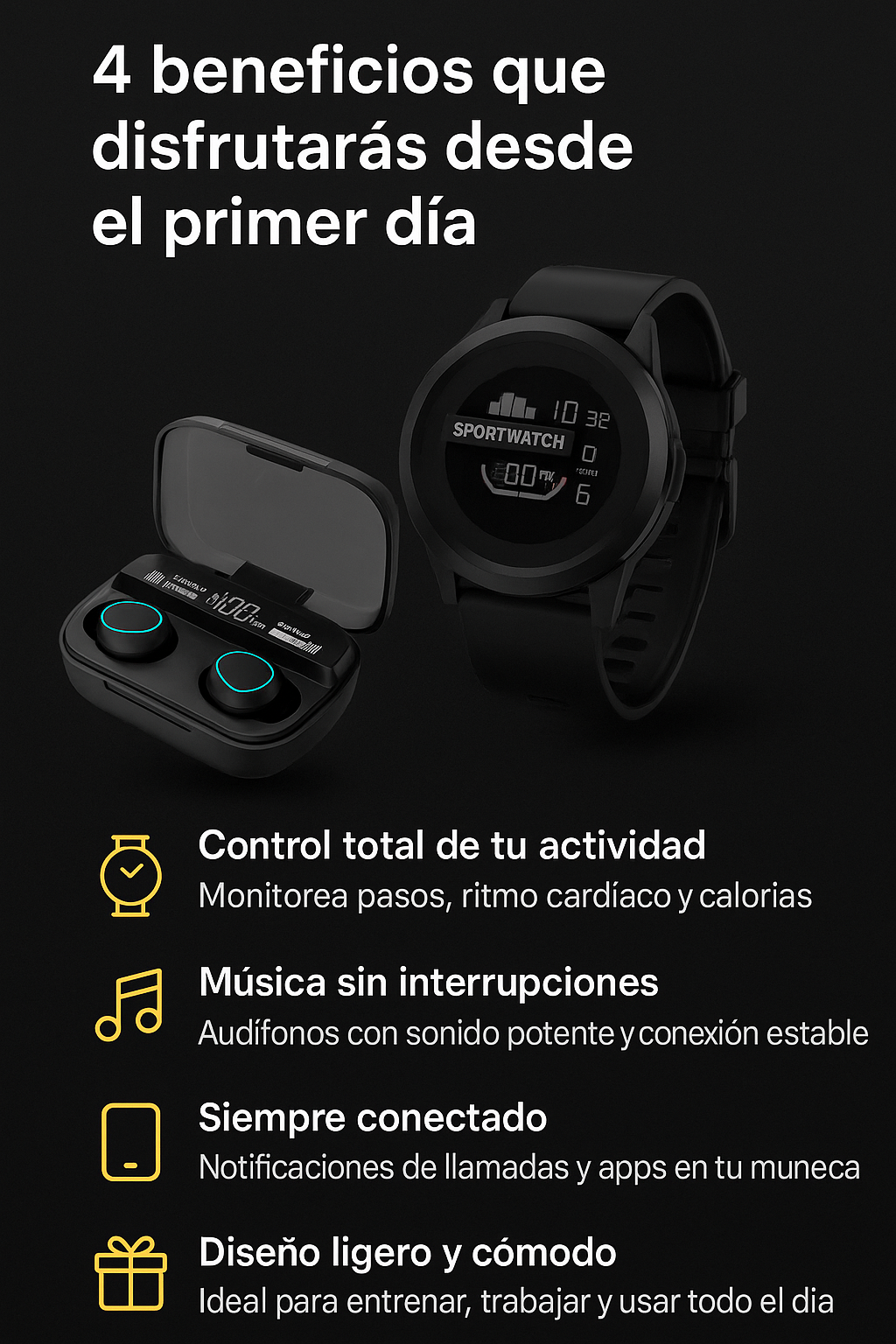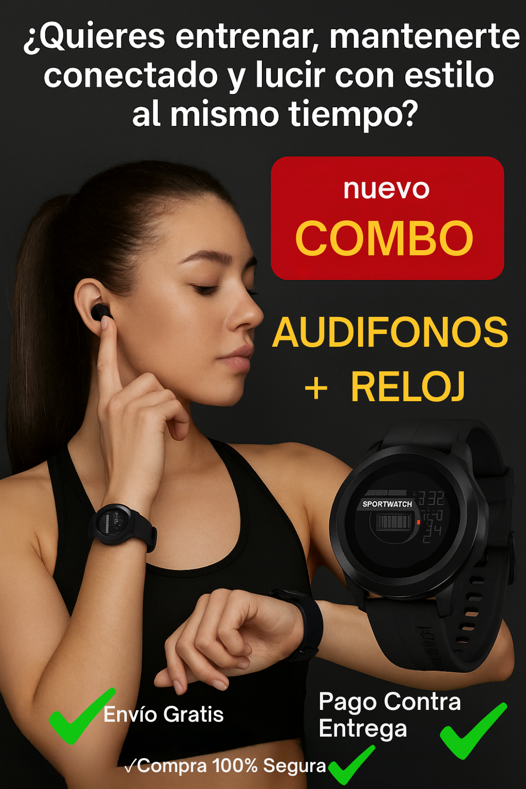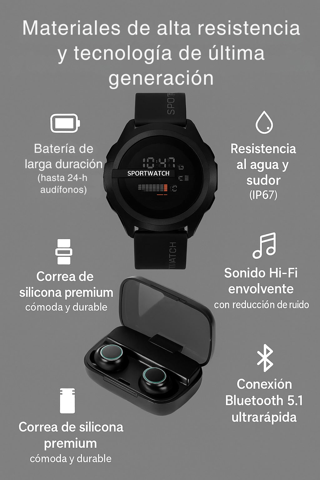 Combo Tactico Audifonos M10 + Reloj Sportwatch Milicia