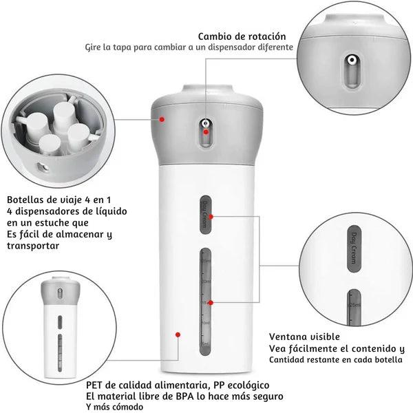 Con el contenedor múltiple 4 en 1, tus líquidos van seguros, sin fugas y bien organizados.