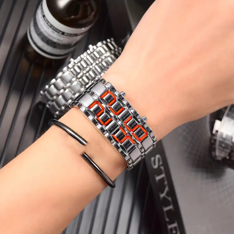 Este no es un reloj cualquiera: es un accesorio que fusiona estilo, tecnología y personalidad. Su pantalla LED estilo lava crea un efecto de luz único, elegante y llamativo.