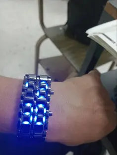 Diseño oculto: parece un brazalete metálico hasta que se enciende